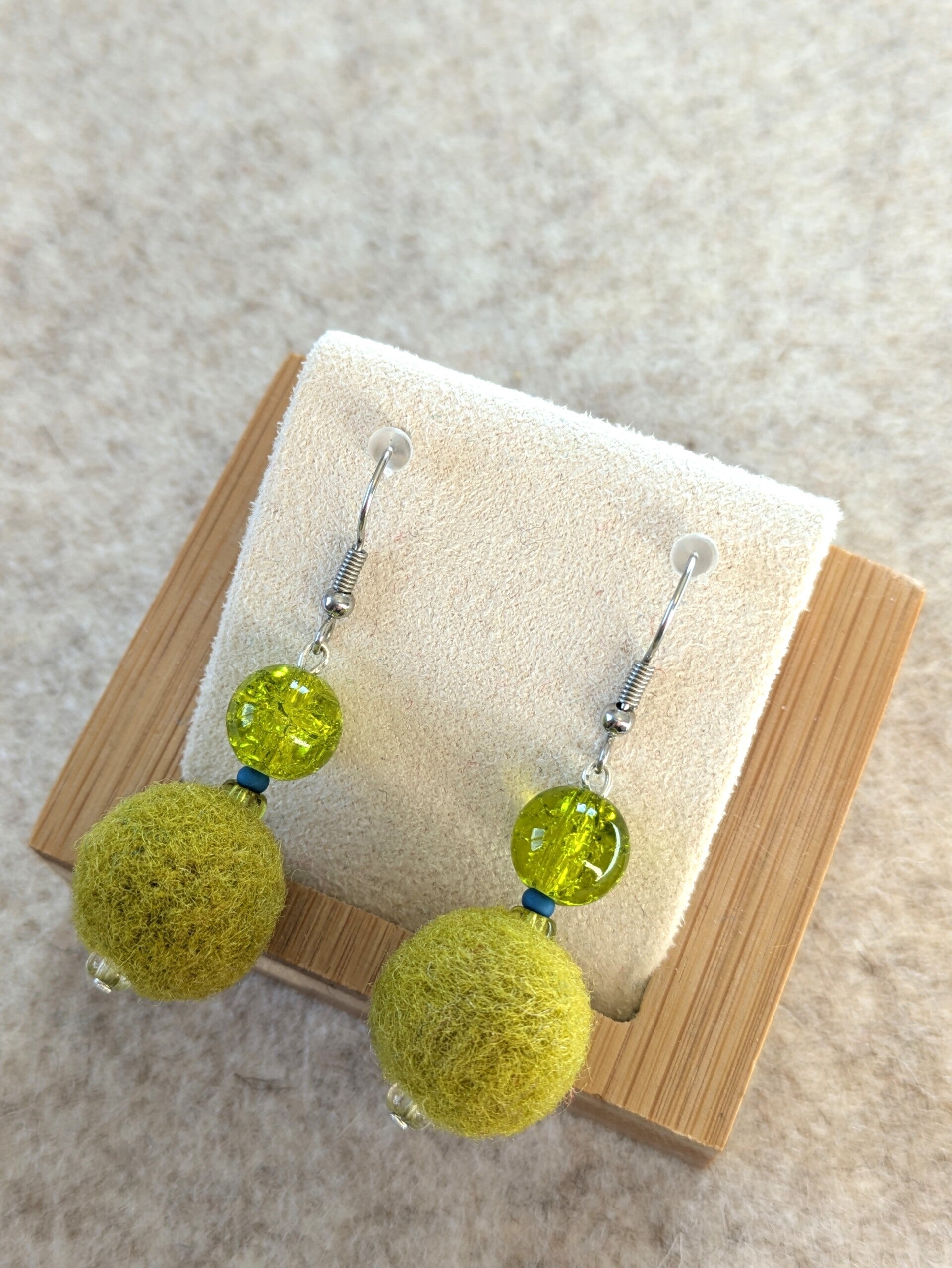 - Bijoux faits main : des boucles d’oreilles en laine feutrée, vendues par paires, pour un style unique et coloré à prix tout doux.
